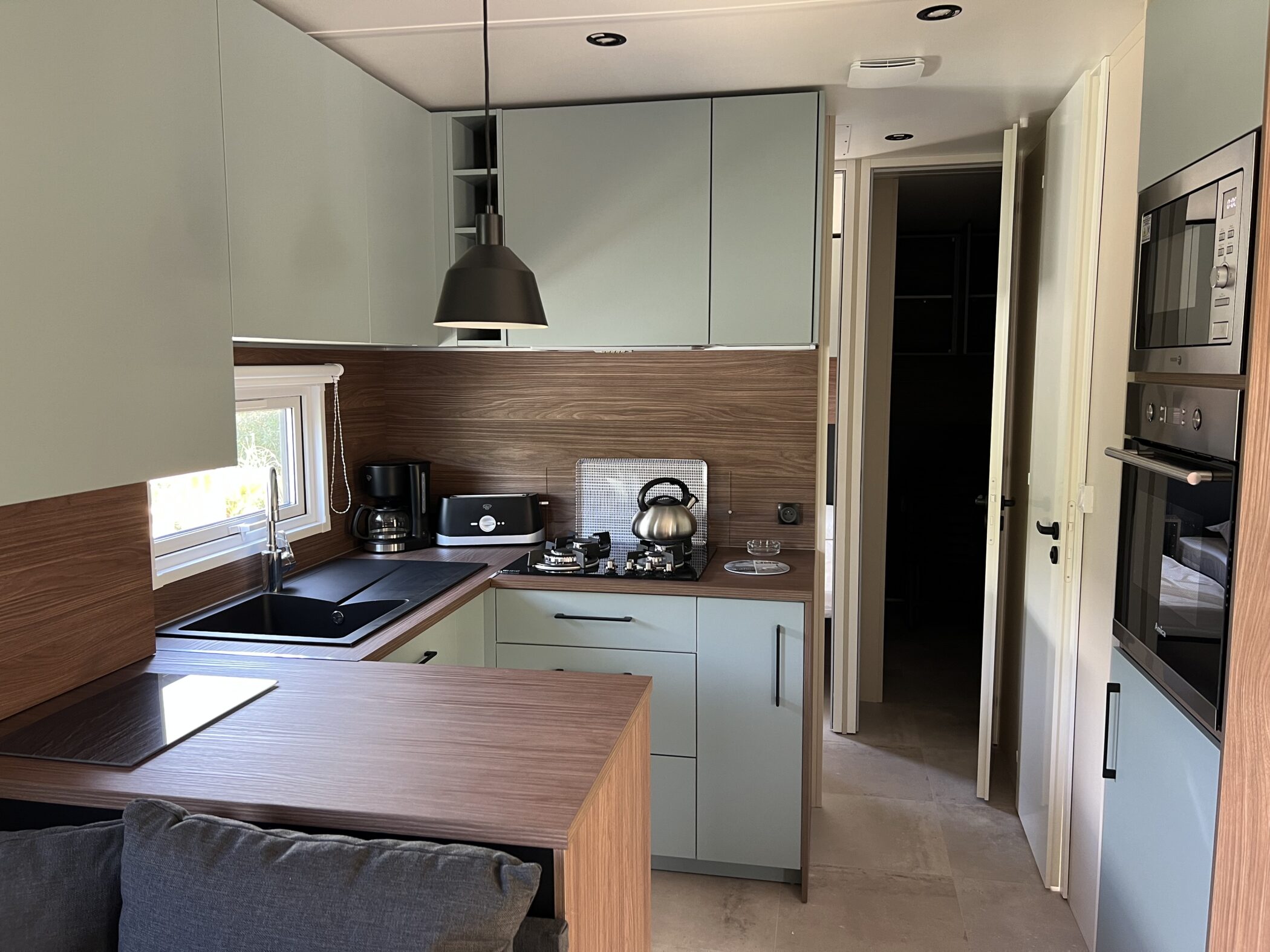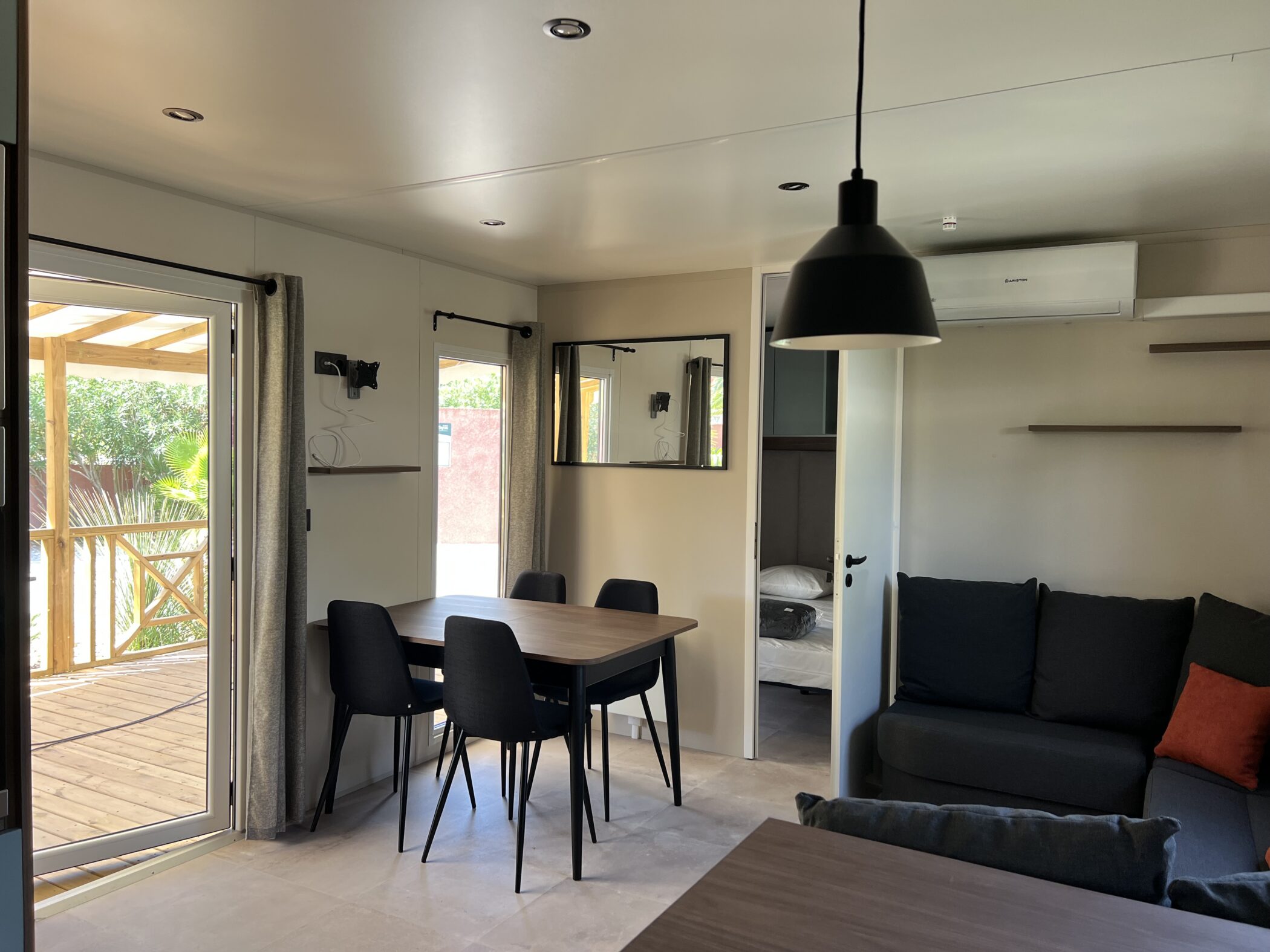 Nestled on a beautiful plot of the campsite, this Trigano Elya 40.3 3-bedroom mobile home creates a welcoming atmosphere in this family campsite, where life is good all year round in the Pyrénées-Orientales.