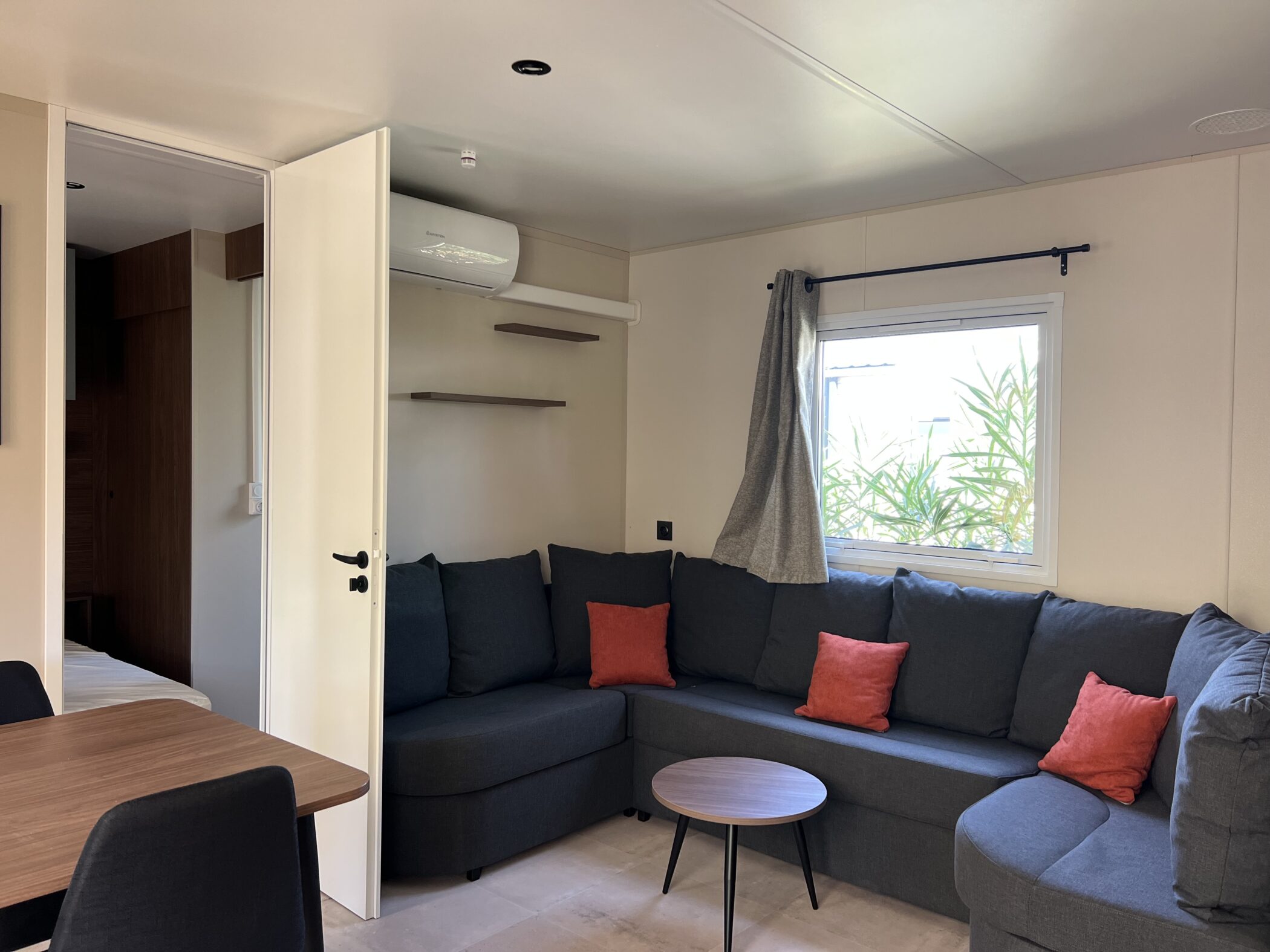 The Trigano Elya 40.3 3-bedroom mobile home offers an idyllic retreat for 6 people at the peaceful Clos du Thym campsite.